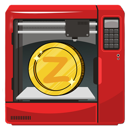 Minting is the real world production of the coin (using 3d metal printing). The Z ecosystem, through the Vault, enables users to mint fully owned stamped coins (100%). A coin cannot exist in both physical and digital form. As a result of minting, a coin is removed from the Z ecosystem and now exists in the real world. It is then physically sent to the user which minted the coin for his own use. A minted coin always keeps its nominal value and can be returned at any time to be reinserted in the Z ecosystem. Such action will mean the melting of the coin, thus its disappearance from the real world and the reappearance in the Z ecosystem. The digital coin can then always be exchanged back for its nominal value only, irrespective of the market value it may have or the minting cost of the coin. There is no limit on the number of times a coin can be minted and digitalized back.